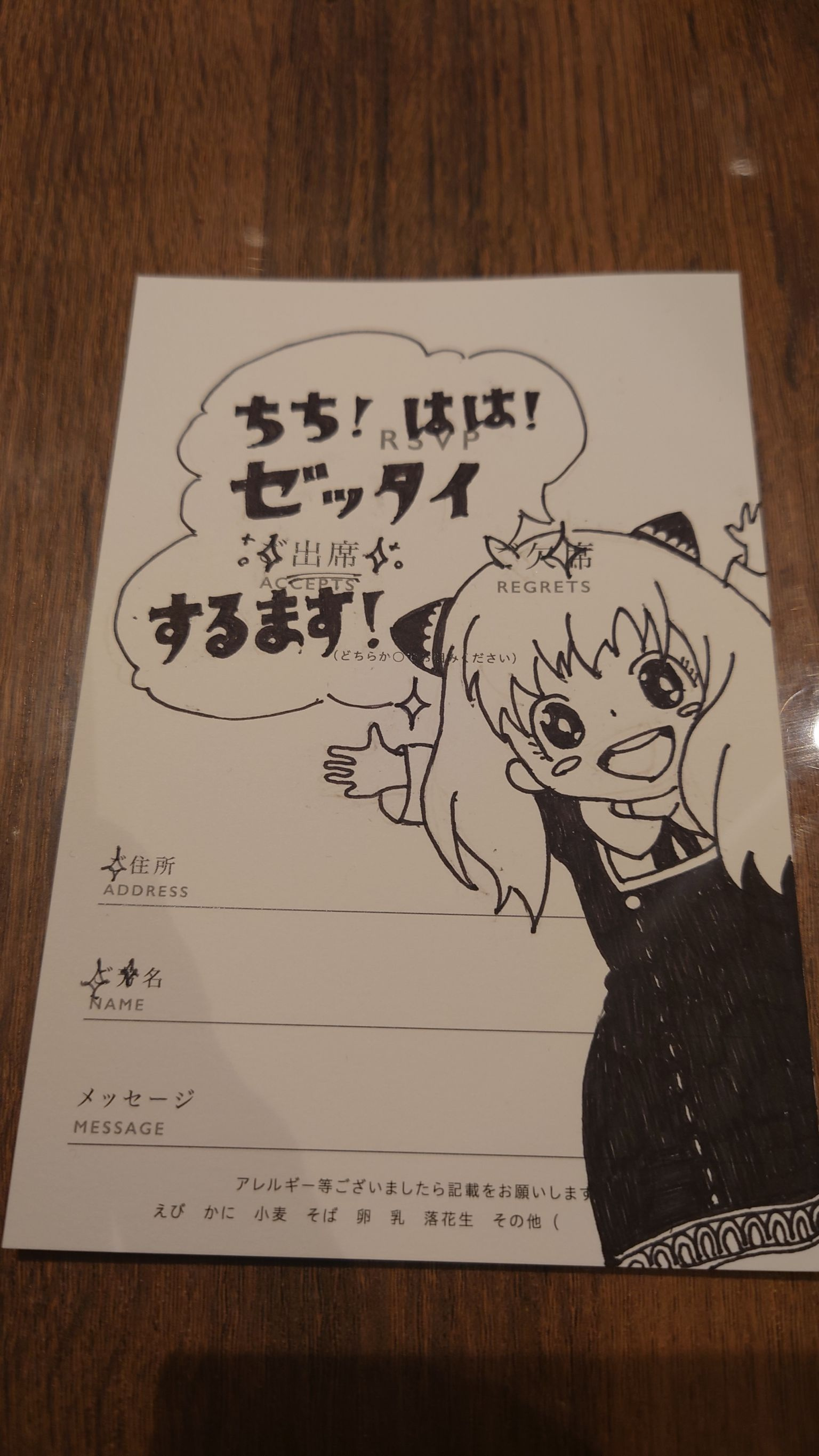 招待状の出欠席表をアレンジしていました~